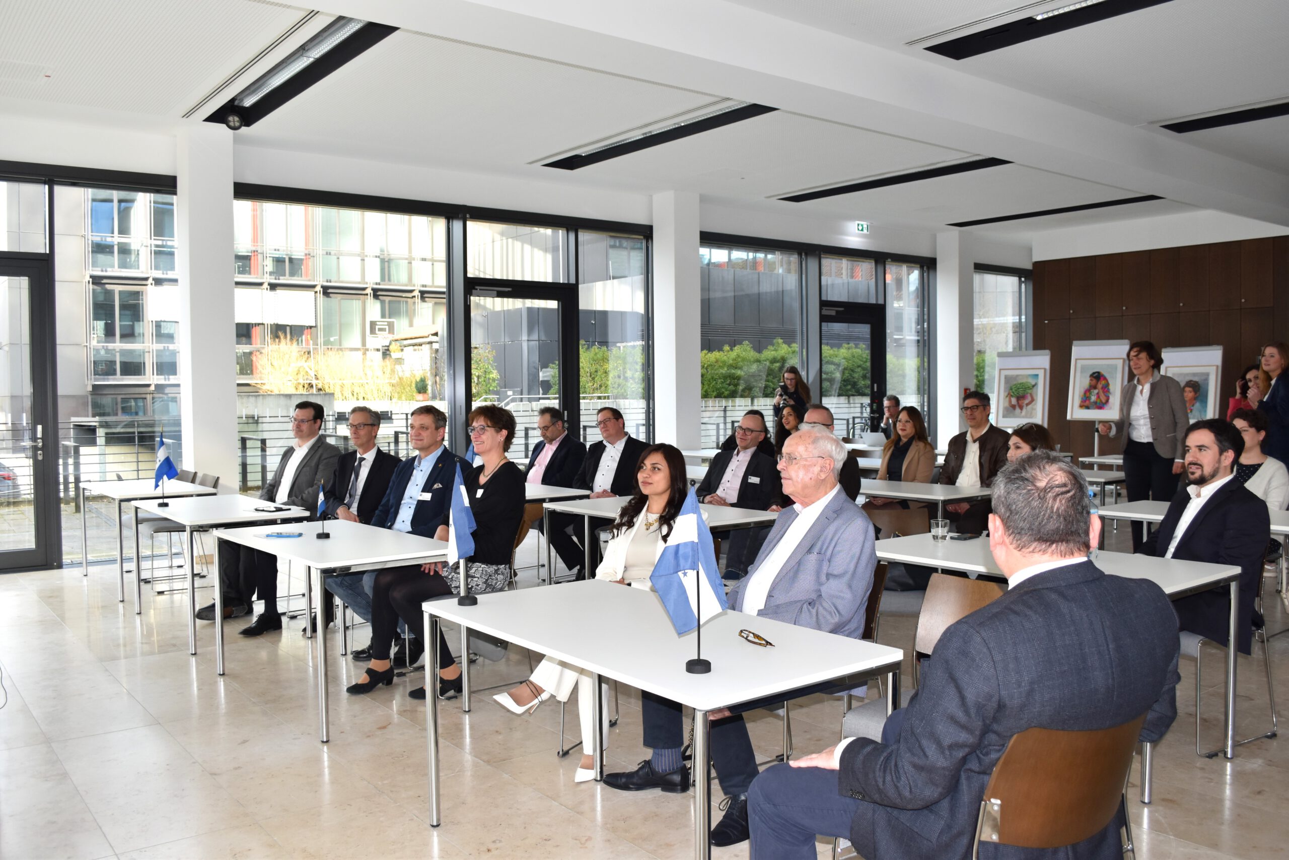 Zu diesem besonderen Ereignis hatte die Industrie- und Handelskammer Nord Westfalen (IHK) zahlreichen Gäste geladen: Lehrer*innen und Schüler*innen des CTHA (per Videokonferenz zugeschaltet), Lehrer*innen des HBBK und des Wilhelm-Emmanuel-von-Ketteler-Berufskollegs (WE-VK-BK), diplomatische Vertreter*innen, Vertreter*innen der Bezirksregierung Münster, Vertreter*innen der IHK sowie private Unterstützer*innen der deutsch-honduranischen Zusammenarbeit.