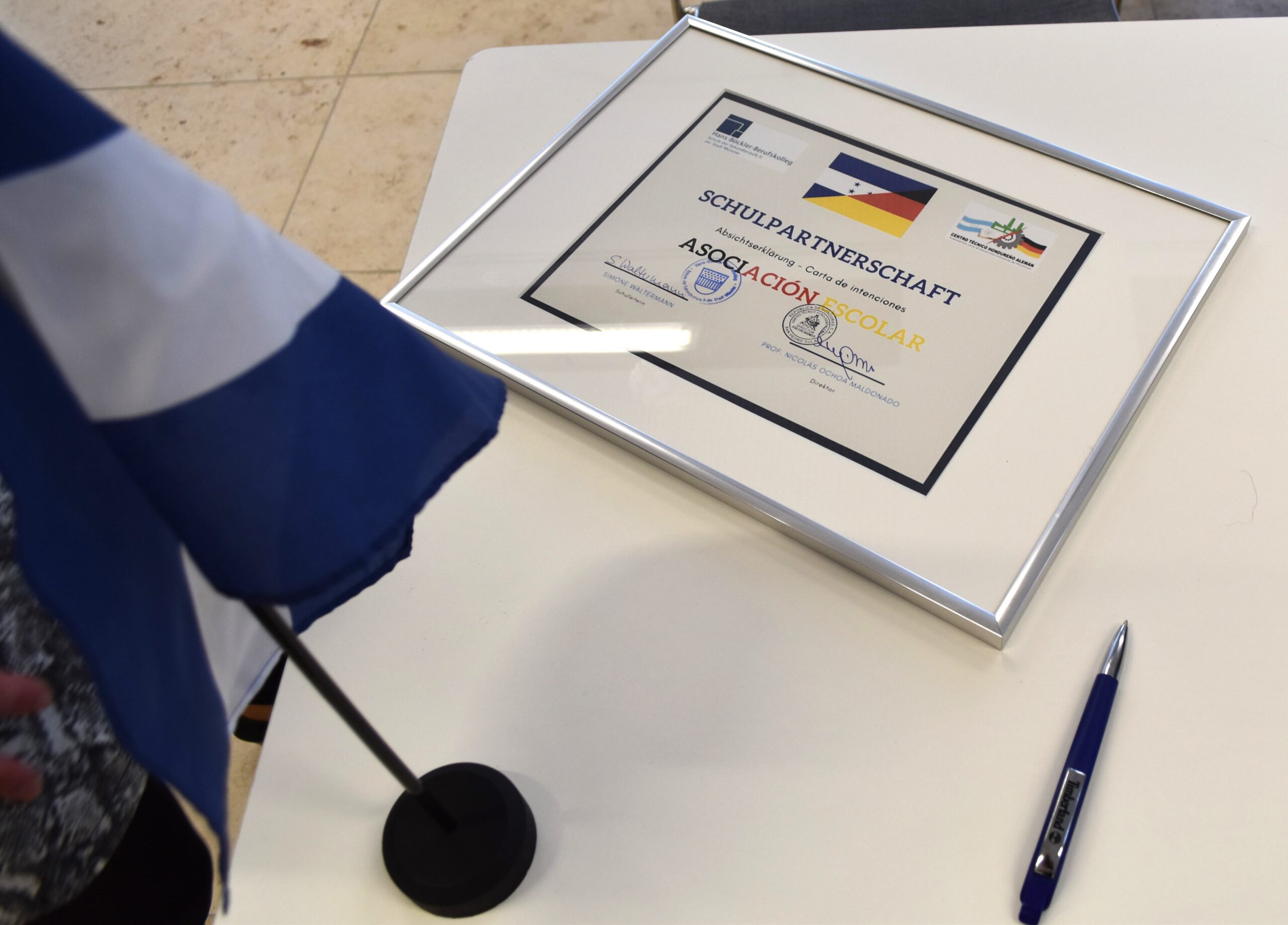 Simone Waltermann, Schulleiterin des Hans-Böckler-Berufskollegs, unterzeichnete am 21. Februar 2025 die Urkunde zur Schulpartnerschaft mit dem Centro Técnico Hondureño Alemán (CTHA) und eröffnete somit zusammen mit dem Direktor des CTHA Prof. Nicolás Ochoa Maldonado den Beginn einer zukunftsweisenden internationalen Partnerschaft zwischen den beiden Bildungseinrichtungen in Münster und San Pedro Sula.