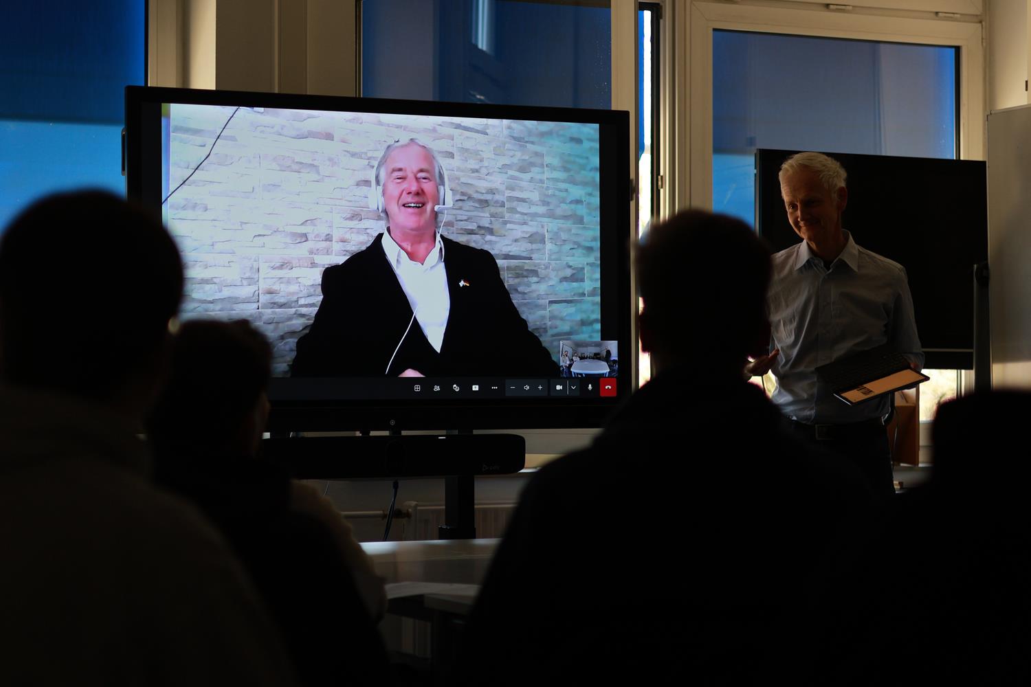 Dank moderner technischer Ausstattung am HBBK konnten die Lehrkräfte und Initiatoren Michael Hops und Sven Henner Stieghorst (vor dem Whiteboard v. r.) dieses besondere Event ermöglichen.